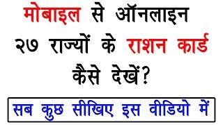 इस विडियो में आपको जानकारी मिलेगी कि Online अपना राशन कार्ड कैसै देखें और कैसे...