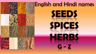 Seeds, Spices Herbs Hindi to English Names Part II From alphabet G to Z - बीज मसालों और जड़ी बूटियों Horse gram कुल्थी Hemp...